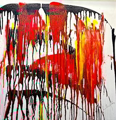 Acrylic poured paint & Oil on canvas